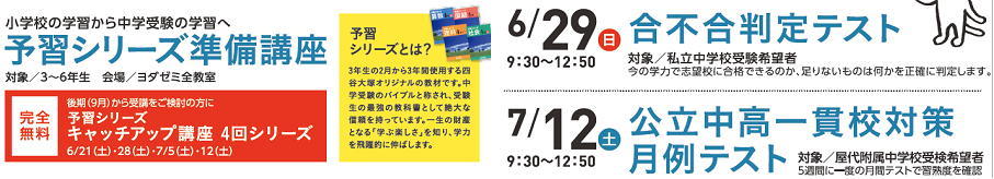 ◎5月31日(土)に運動会が予定されている皆さん:運動会が雨天順延となった際は、5月31日(土)16:30〜ヨダゼミ各教室にて振替受験が可能です。詳細は、最寄りのヨダゼミ各教室までお問い合わせください。