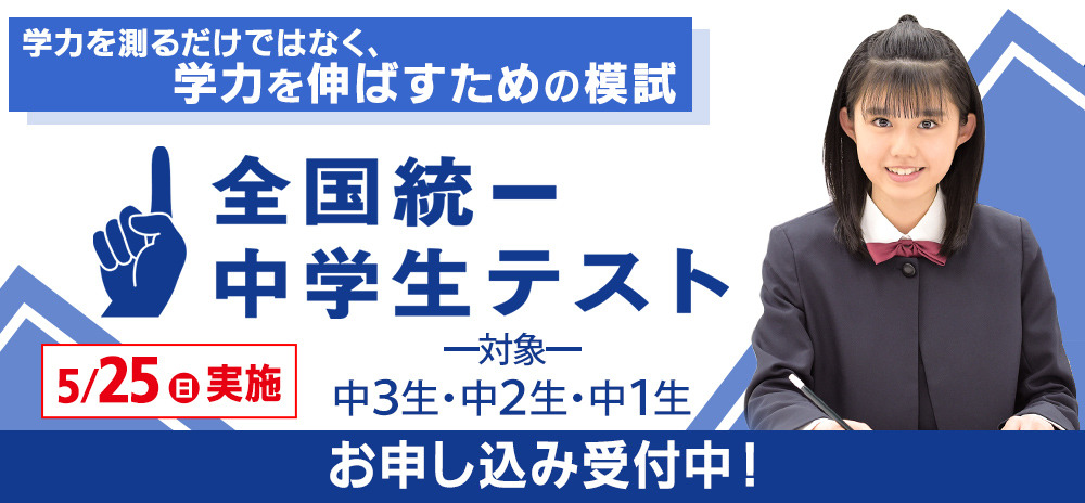 東進主催の全国統一中学生テストは5/25(日)9:00〜実施予定です。