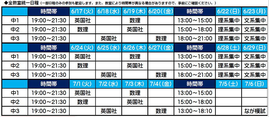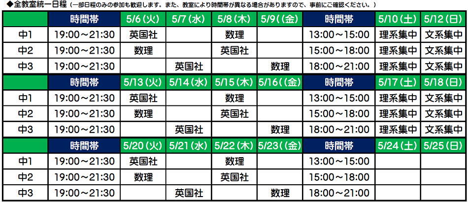 もちろん、期間中1日だけとか、苦手教科だけといった受講スタイルも可能です。