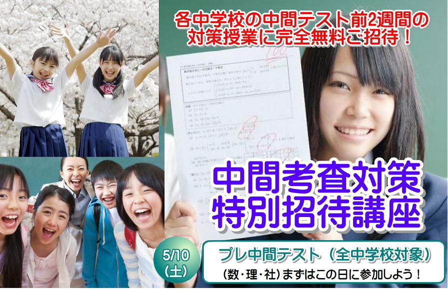 ◆中間考査対策特別招待講座申込◆問い合わせはこちら